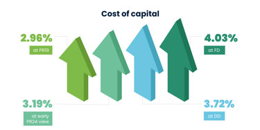 Firstly, risk and return: cost of capital was probably the most contentious issue from the draft determinations. Ofwat has landed on the highest point in its range and has shown considerable movement over the process, from 2.96% at PR19 to an early PR24 view of 3.19%, then 3.72% at draft determination, and finally alighting on 4.03%. Most of the movement is down to the higher cost of finance as interest rates have risen, but also no doubt reflects the need to continue to attract finance over the coming period.